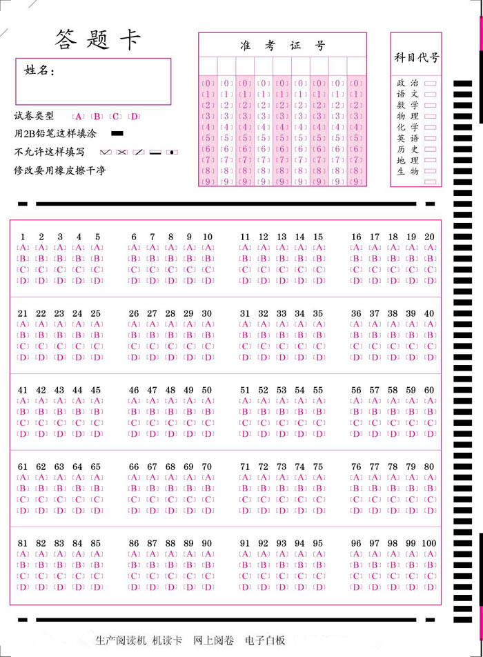 槐蔭區(qū)閱卷機(jī)判卷機(jī)讀卡機(jī)答題卡定制選品科